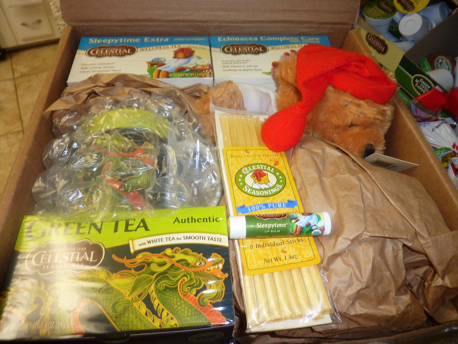 I'm back from my mission trip in Hamilton, GA and I have returned with many ideas for topics. Waiting for me at home, as I expected, was the Celestial Seasonings box, which was very exciting. I got a book about herbs, lip balm, honey, tea, a mug, a coaster, and the sleepytime bear!