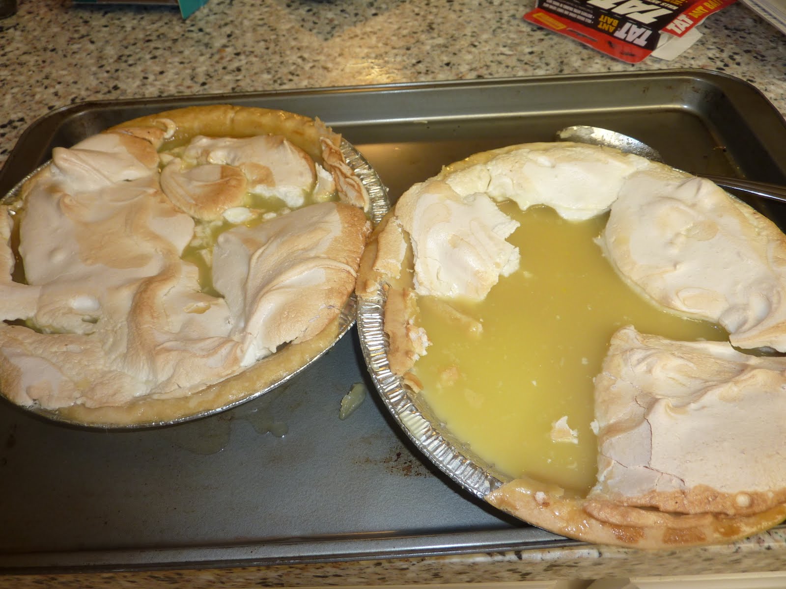 Green tea is a palate cleanser; it's a light, refreshing taste that is good with honey. The cup I just had did not have any sweetener though, because I needed something almost bland after having a super sugary homemade meringue. The meringues are actually just the leftover topping to a key lime pie that I attempted. I say attempted, because I forgot to add cornstarch to the key lime pie base and so I made two pies that never congealed.