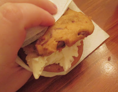 As if the day had not been filled with enough sweet satisfaction before, my uncle then made an ice cream sandwich out of two homemade chocolate chip cookies and butter pecan ice cream.